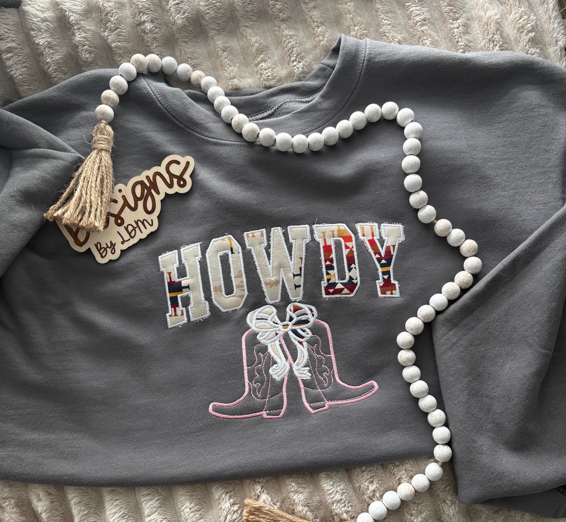 Add a little western charm with this "howdy ' applique! Perfect for sweatshirt weather